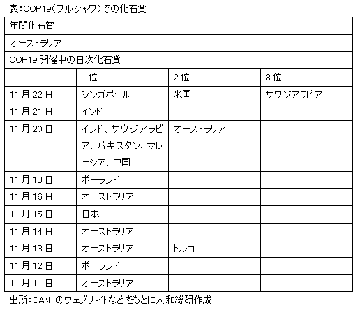 「化石賞」は、世界各国の環境NGOが作るグループ「気候行動ネットワーク」が、COPの期間中、気候変動対策に消極的だと判断した国を毎日選び、皮肉を込めて贈っています。
